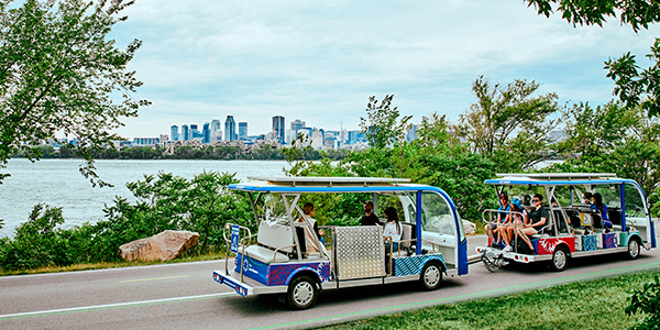 À bord d'un véhicule électrique d'une quinzaine de places, prenez le temps de voyager plus calmement et de sillonner les îles au gré du vent, tout en découvrant des endroits inédits au parc Jean-Drapeau.