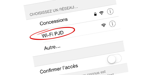 Choisissez le réseau « WI-FI PJD » à partir des réseaux disponibles dans vos Réglages ou Panneau de configuration.